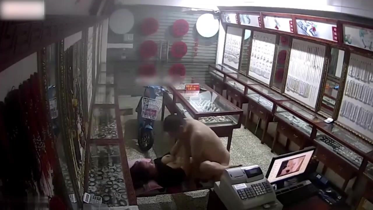 監控偷拍 女店員在電腦上看色情片被發現 老闆順勢拿來長凳狂操